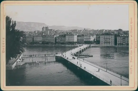 Kabinettfoto Genève Genf Schweiz, Pont du Bergues, Grand Quai, um 1890