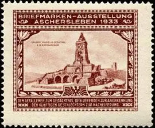 Den Gefallenen zum Gedächtnis, den Lebenden zur Anerkennung. Den künftigen Geschechtern zur Nacheiferung. Briefmarken - Ausstellung, dunkelbraun, Größe/Zustand: 4x5 , guter Zustand, Original alte Reklamemarke die seinerzeit für die Werbung benutzt wurde