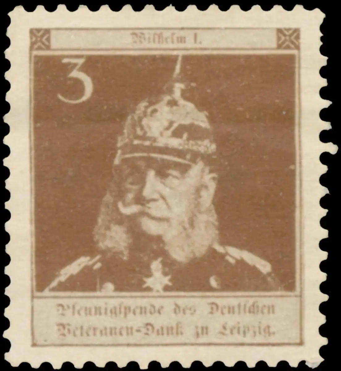 Pfennigspende des Deutschen Veteranen-Dank zu Leipzig, braun, Größe/Zustand: 3x3 , guter Zustand, Original alte Reklamemarke die seinerzeit für die Werbung benutzt wurde
