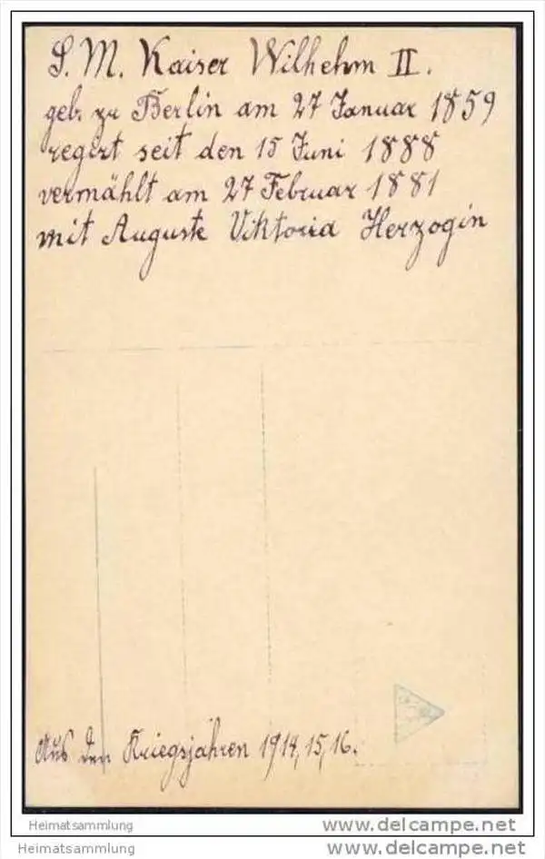 Kaiser Wilhelm II. - Phot. Voigt Homburg v. d. Höhe - Verlag NPG - Rückseite beschrieben (G22422)