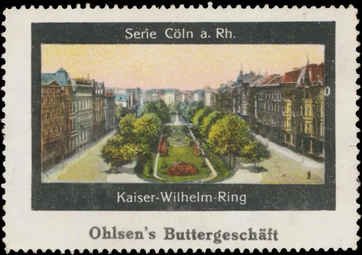 Serie Köln am Rhein, Käse-Großhandlung, Ohlsens Buttergeschäft, Größe/Zustand: 4x7 , guter Zustand, Original alte Reklamemarke die seinerzeit für die Werbung benutzt wurde