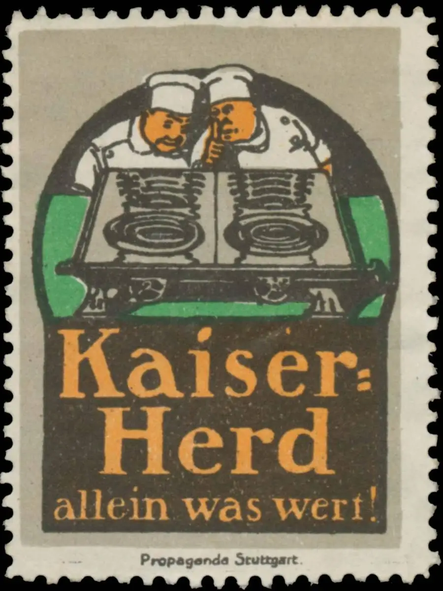 Druckerei: Propaganda, Stuttgart, heizen, kochen, Größe/Zustand: 6x5 , guter Zustand, Original alte Reklamemarke die seinerzeit für die Werbung benutzt wurde