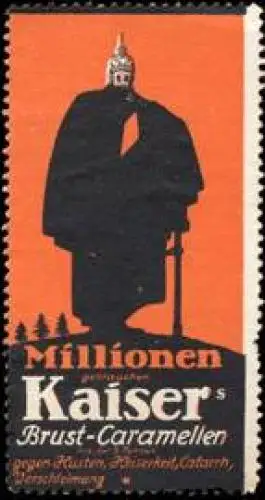 Millionen gebrauchen Kaisers Brust - Caramellen mit den 3 Tannen gegen Husten, Heiserkeit, Catarrh, Verschleimung, Apotheke, Größe/Zustand: 7x4 , guter Zustand, Original alte Reklamemarke die seinerzeit für die Werbung benutzt wurde