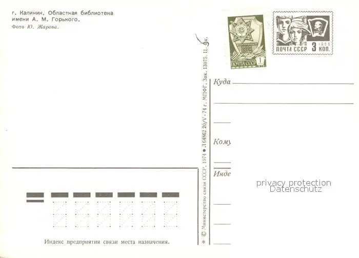 Kalinin_Twer Bibliothek Kalinin Twer postalisch nicht gelaufen nach 1965 Ganzsache (eingedruckte Briefmarke) Erhaltung siehe scans [NatalD47] Ganzsache (eingedruckte Briefmarke) NataID47