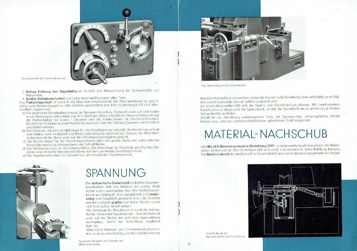 mittlerer bis noch guter Zustand, Gebrauchs- und Alterungsspuren: teils leicht knittrig - Umschlagfalz überwiegend aufgerissen - teils etwas fingerfleckig, Rückseite gering bekrtizelt - Seiten am unteren Rand beidseitig des Mittelfalzes durch ehemaliges Zusammenkleben gering beschädigt, Firma stellt ihre Produkte vor, mit Antrieb, Vorschub, Spannung, Material-Nachschub, technischen Daten und Sonderausführungen, Softcover, ca. 21 x 29,5, 16 Seiten mit ca. 20 Bildern