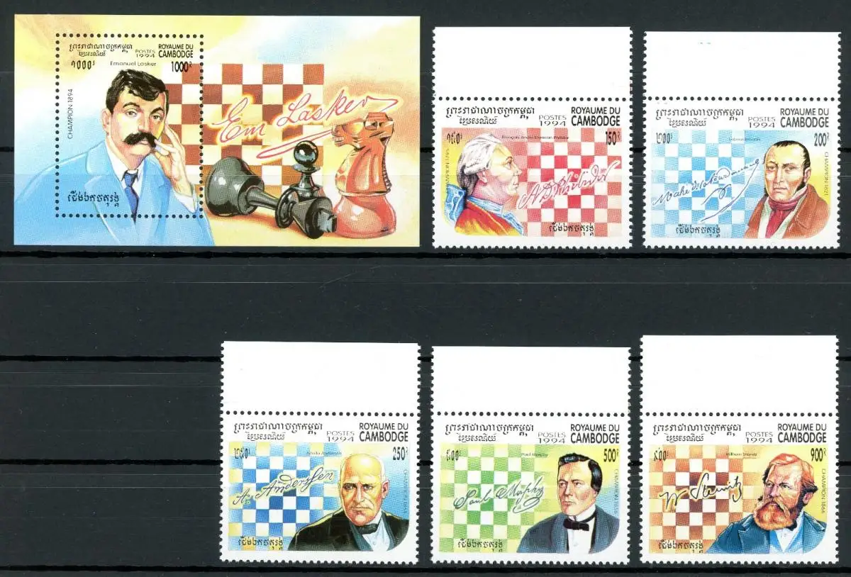Kambodscha 1461-1465 + Block 209 postfrisch Schach #GI664