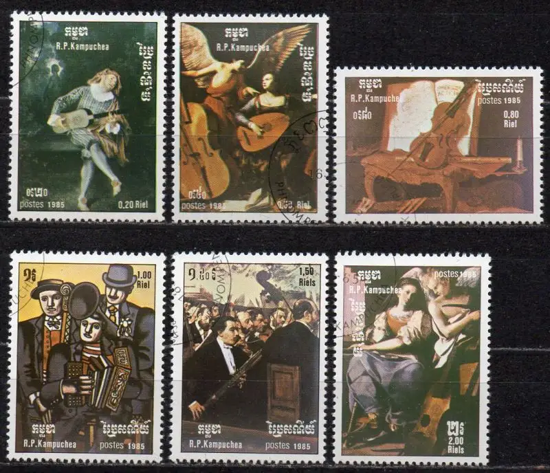 Kambodscha, Mi-Nr. 680 u. a. gest., Gemälde zum internationalen Jahr der Musik