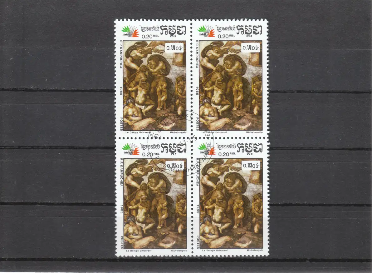 Internationale Briefmarkenausstellung ITALIA ’85, Rom: Gemälde: Die Flut; von Michelangelo (1475-1564), italienischer Bildhauer, Maler und Architekt