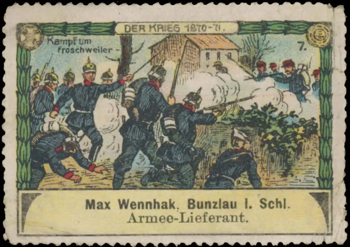Serie: Der Krieg 1870-71, Größe/Zustand: 4x6 , beschädigt, Original alte Reklamemarke die seinerzeit für die Werbung benutzt wurde