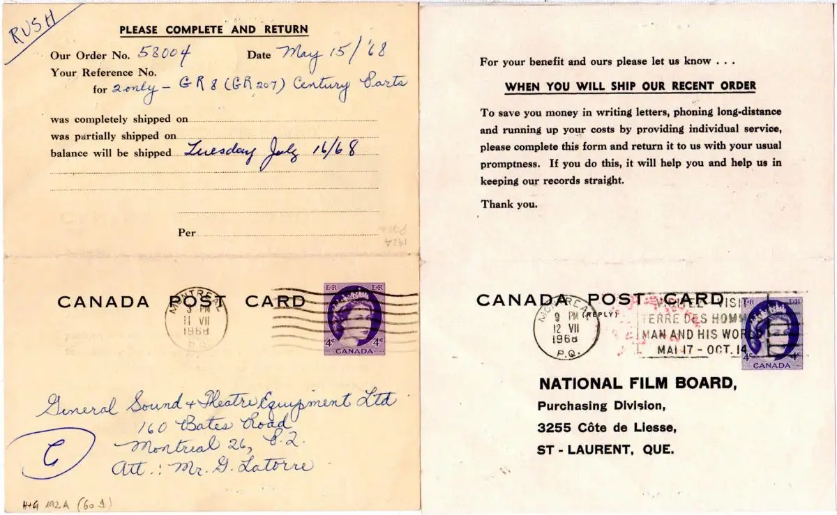Kanada 1968, hin u. her gebr. 4+4 C. Doppelkarte Ganzsache v. Montreal