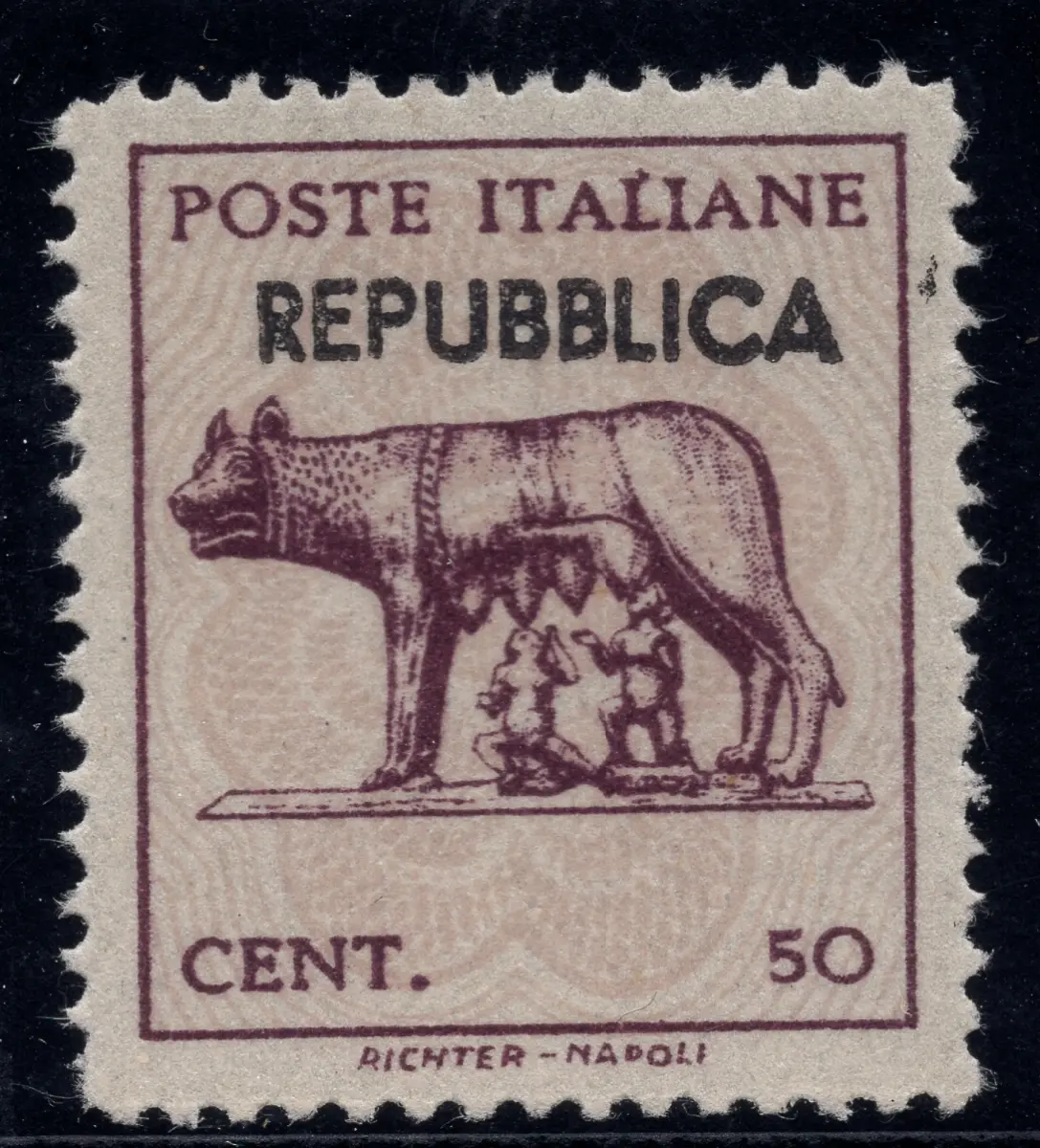 M - Ohne Gummi - Lupa Cent. 50 n. 515A ohne Wasserzeichen mit schwarzem Handaufdruck REPUBLIK - Lokale Propagandaausgabe zur Volksabstimmung vom 2. Juni 1946 - Uncommon Cod. 1168/Web