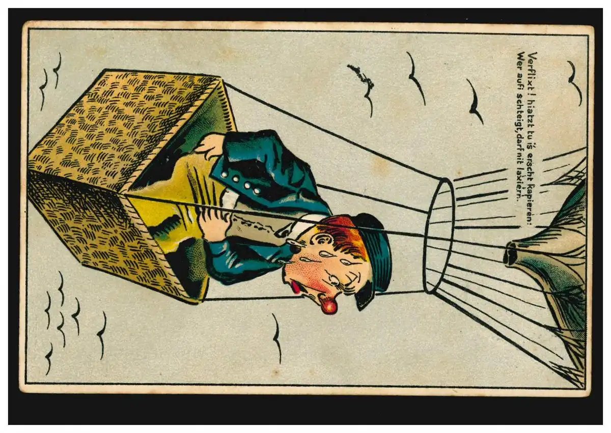 Karikatur-AK Durchfallproblem in der Gondel: Wer aufsteigt darf nicht laxiern!