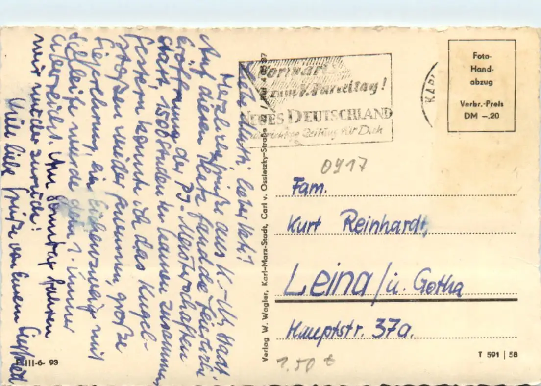 Der Zustand der Ansichtskarte war wie beschrieben und der Preis akzeptabel. Der Versand erfolgte leider erst nach knapp einer Woche nach Aufforderung und Androhung von Konsequenzen. Deshalb werde ich hier nicht mehr kaufen
