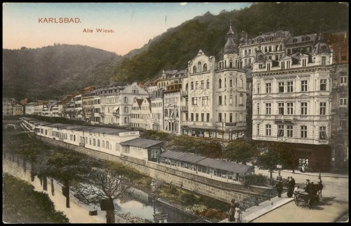 Karlsbad Karlovy Vary Alte Wiese Panorama-Ansicht Stadt Teilansicht 1910