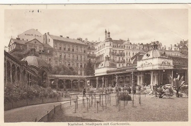 Karlsbad, Stadtpark mit Gartenzeile gl1932 F9420