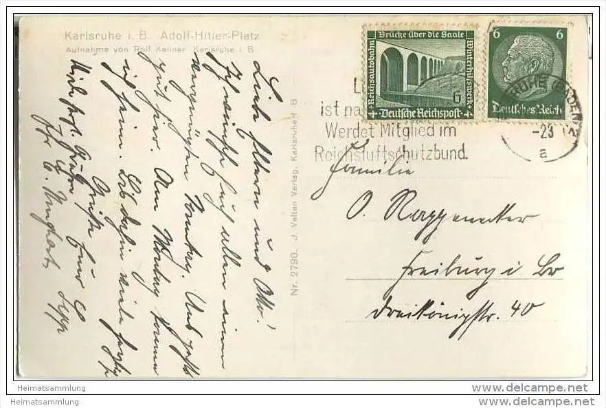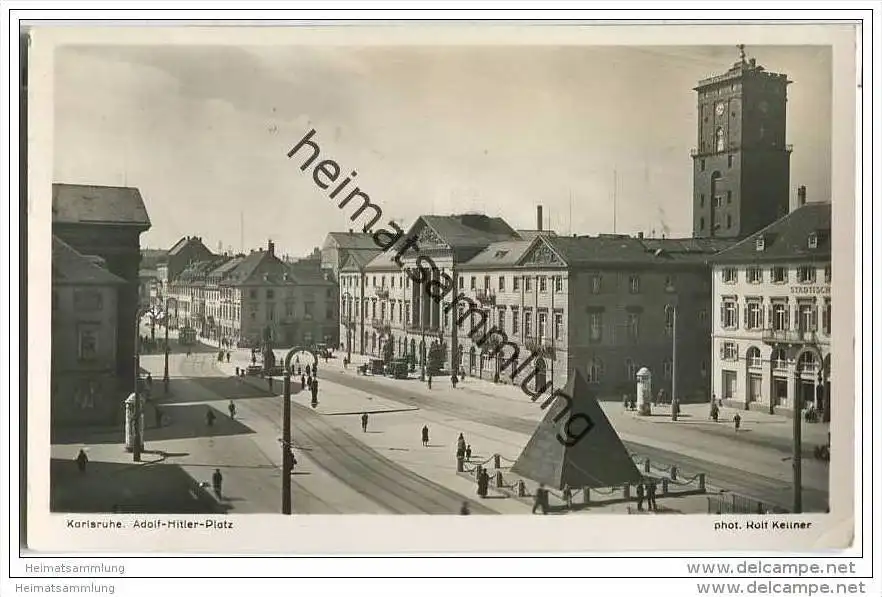 Karlsruhe - Adolf-Hitler-Platz - Foto-AK - Verlag J. Velten Karlsruhe (G27369) gel. 1937