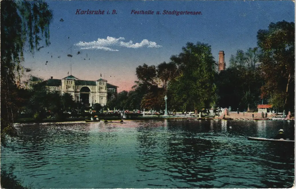 Karlsruhe Festhalle u. Stadtgarten 1917 dt. Feldpost (Zensur-/Prüfstempel rot)