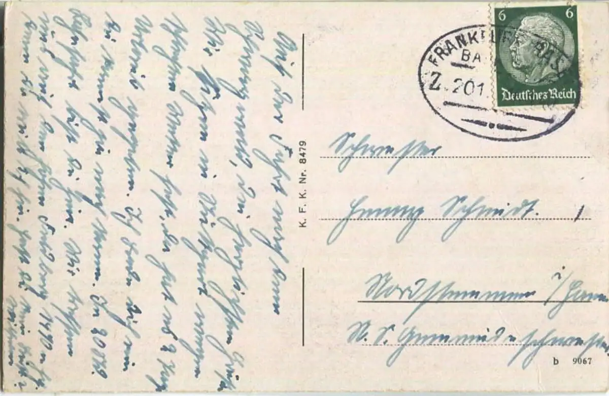 Karlsruhe - Hauptpost - Grenadierdenkmal - Strassenbahn - Gebrauchsspuren (E41078) gel. 1940