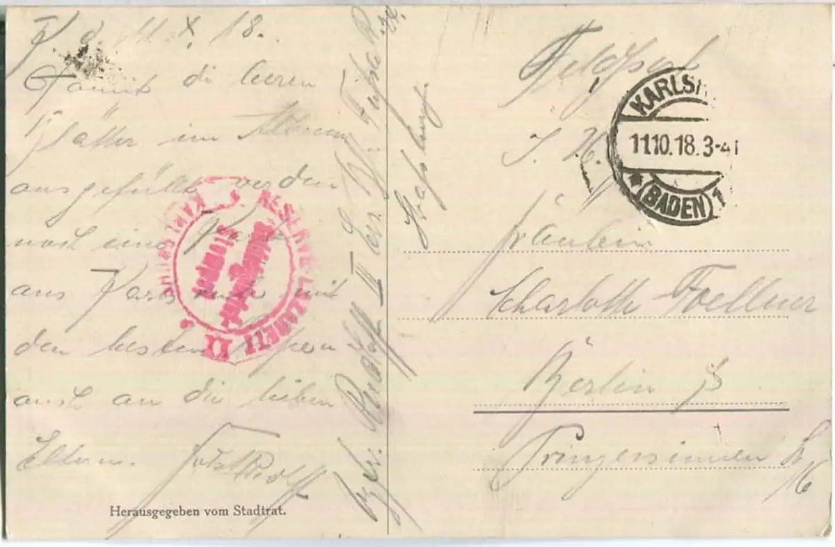 Karlsruhe - Rondellplatz - signiert W. Hempfing - Feldpost - Stempeldurchschlag (G54679) gel. 1918