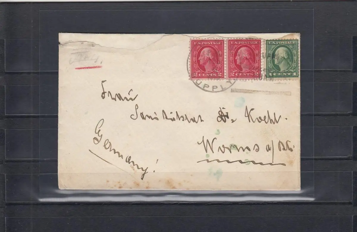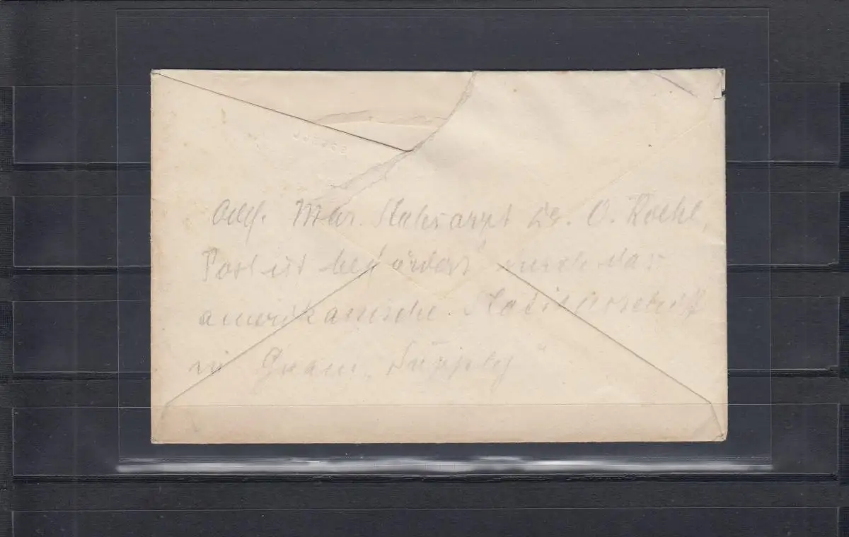 Brief des Stabsarztes Dr. Koehl. 3 Marken US-Frankatur in Guam, an Bord des Wachschiffes Supply augegeben. Öffnungsmängel