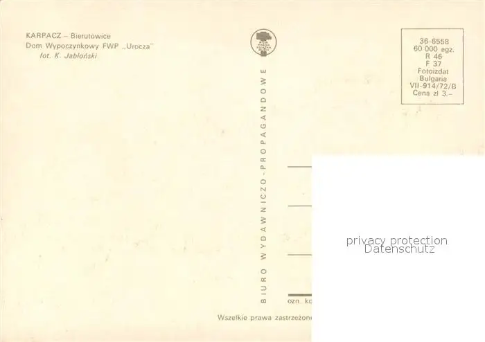 Karpacz Bierutowice Dom Wypocznkowy FWP Urocza Karpacz postalisch nicht gelaufen nach 1965 Erhaltung siehe scans [WerneD78] WernPID7