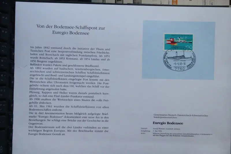 Sie bieten auf eine Karte (DIN A4) zur Euregio-Bodensee mit der Marke Mi.-Nr. 1678, gest. mit ESST 5.5.93 Konstanz, Bodensee