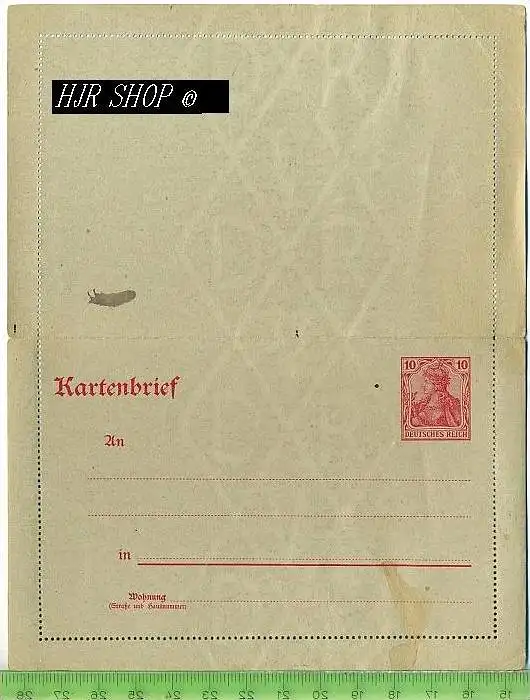 Kartenbrief, Deutsches Reich 10 Pf, rot, postfrisch, WZ DVR
