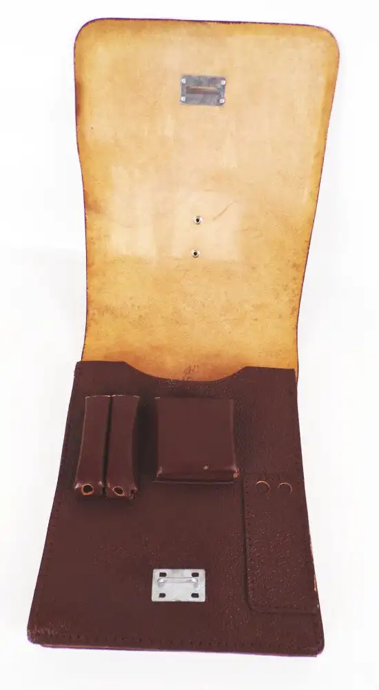 Originale, alte Kartentasche, aus Leder. Mit " MdI I/P " gestempelt. Maße: 20 cm x 24 cm x 4 cm. Erhaltung: leichte Gebrauchsspuren vorhanden, alles weitere siehe bitte Fotos.