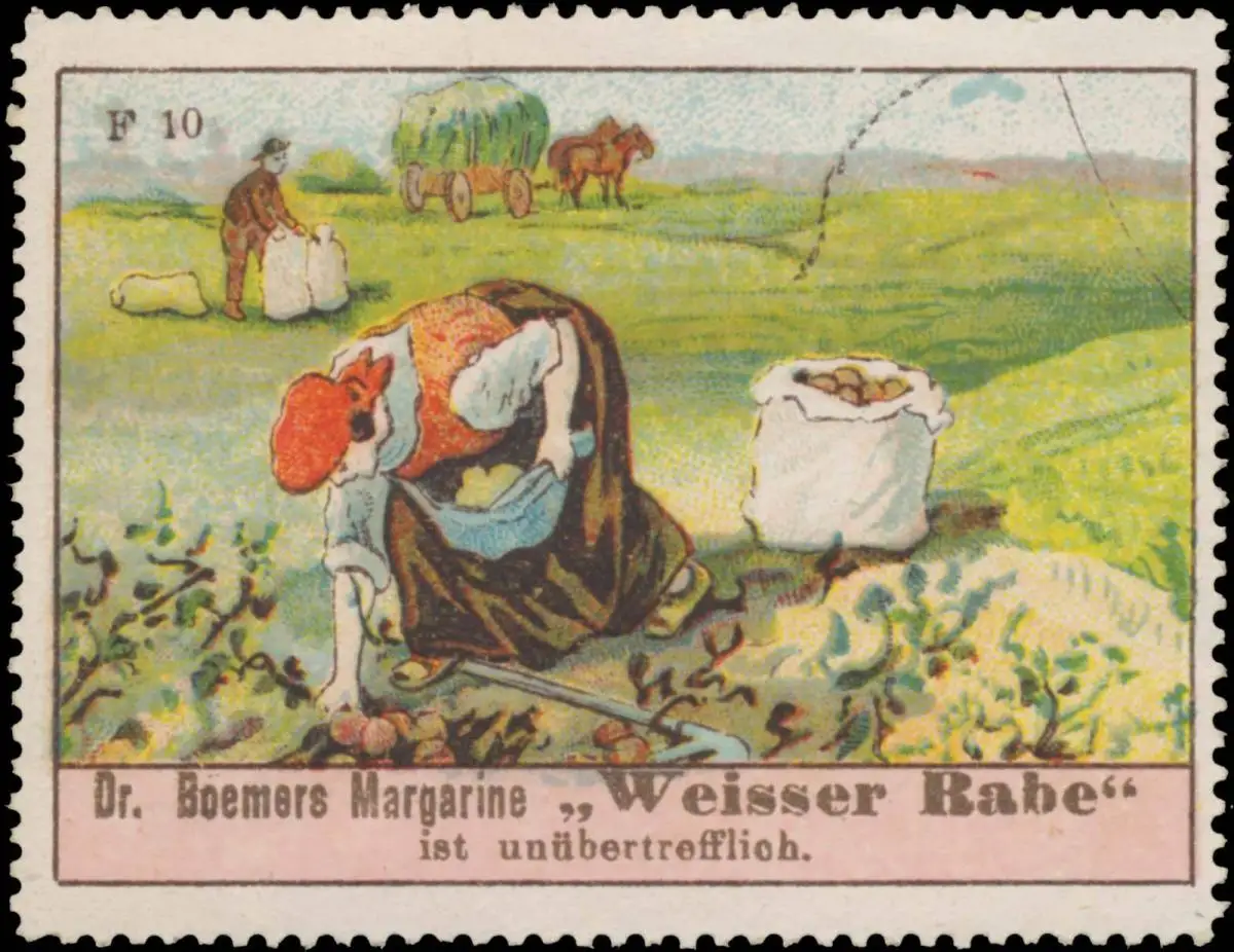 Dr. Boemers Margarine Weisser Rabe ist unübertrefflich, Bild F 10, Landwirtschaft, Größe/Zustand: 5x7 , Fehldruck, guter Zustand, Original alte Reklamemarke die seinerzeit für die Werbung benutzt wurde