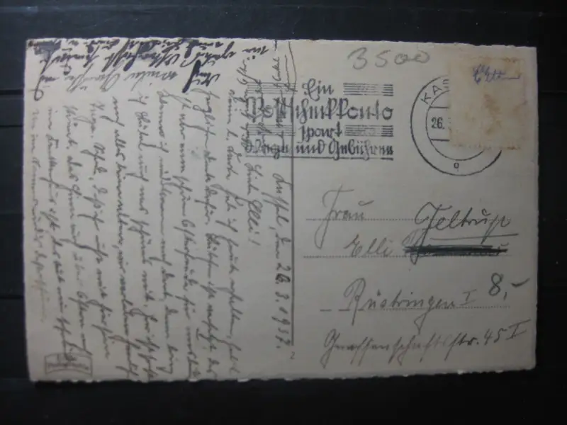 ca. 1937; Unschärfen, Spiegelungen, Verbiegungen, Verwerfungen sind allein durch das abfotografieren bedingt; Karte ist beidseitig abgebildet, Erhalt siehe Scan; ist das Foto qualitativ nicht aussagekräftig genug, kann es besseres Foto angefordert werden. Rückgabe bei Karten ist generell ausgeschlossen.