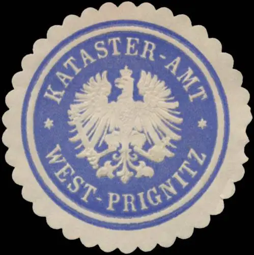 Kataster-Amt, blau, weiß, geprägt, Größe/Zustand: 4 , Fehldruck, guter Zustand, Original Verschluss-Siegelmarke aus Papier welche früher von Behörden, Firmen etc. zum Versiegeln der Briefe benutzt wurden