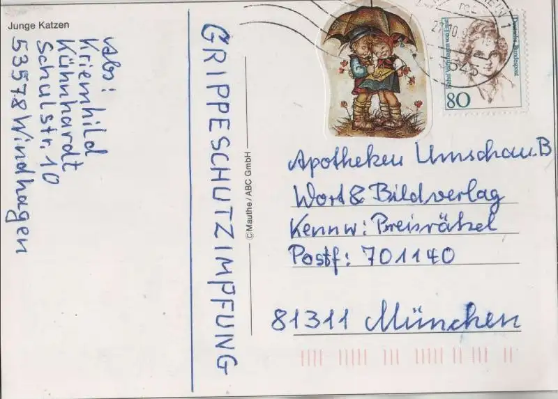 Ich hatte die Rechnung sofort als Vorkasse bezahlt, aber keine Zusendung der Karte erhalten. Trotz Nachfrage keine Rückmeldung bzw. Erklärung. Da es sich zum Glück nur um 1,70 € handelt, ist die Sache für mich erledigt, ärgerlich, aber zu verkraften. Mit den drei anderen Karten, die ich bestellt hatte, hat alles wunderbar geklappt.