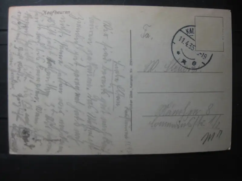 ca. 1935; Unschärfen, Spiegelungen, Verbiegungen, Verwerfungen sind allein durch das abfotografieren bedingt; Karte ist beidseitig abgebildet, Erhalt siehe Scan; ist das Foto qualitativ nicht aussagekräftig genug, kann es besseres Foto angefordert werden. Rückgabe bei Karten ist generell ausgeschlossen.