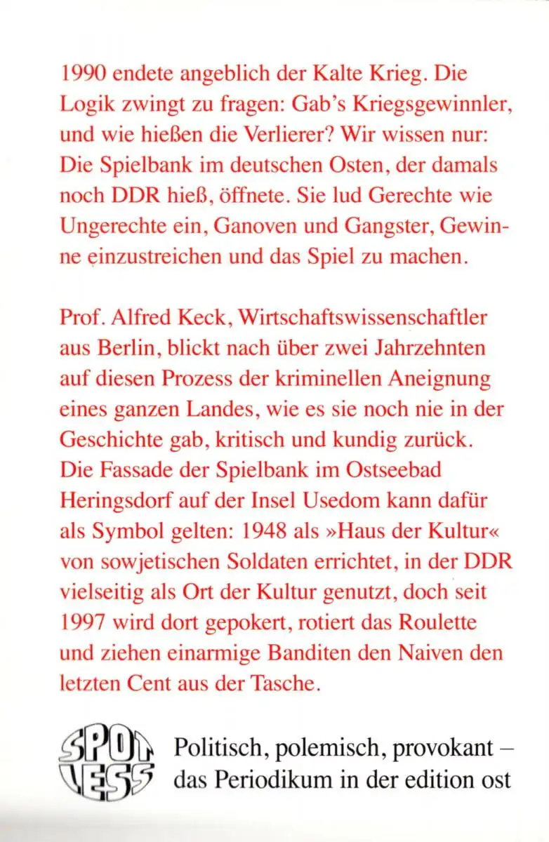 Keck, Alfred Goldrausch im Osten Deutsche Kriegsgewinnler und -verlierer nach dem Ende des Kalten Krieges Erscheinungsjahr: 2012
