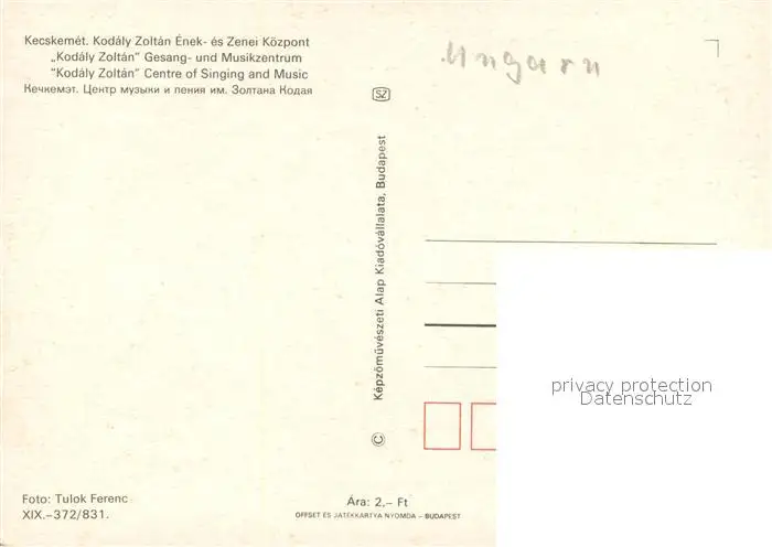 Kecskemet Kodaly Zoltan Gesang und Musikzentrum Kecskemet postalisch nicht gelaufen nach 1965 Erhaltung siehe scans [WerneD78] WernPID7