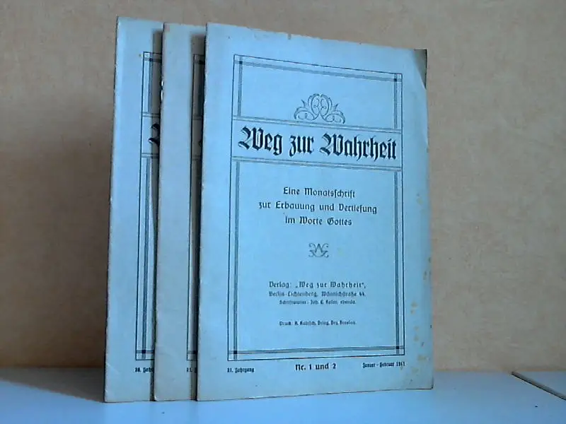 Weg zur Wahrheit Heft Nr. 1 und 2; Nr. 3 -6; Nr. 9-12 - Eine Monatsschrift zur Erbauung und Vertiefung im Wort Gottes 3 Hefte