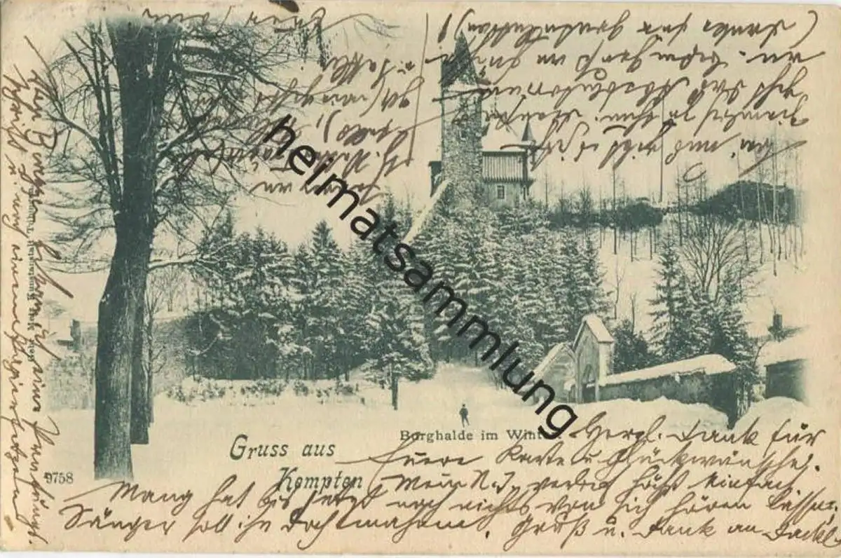 Kempten - Burghalde im Winter - Verlag Gebr. Metz Tübingen - gel. 1901