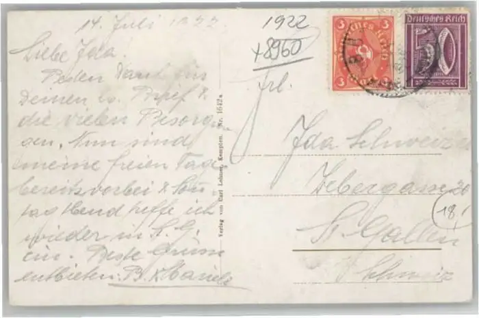 Kempten Kempten x Kempten (Allgaeu) postalisch gelaufen 1922 Alte Ansichtskarte Postkarte