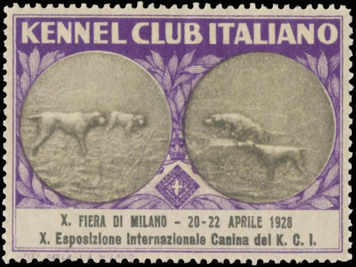 X. Fiera di Milano, Hund, Größe/Zustand: 4x5 , guter Zustand, Original alte Reklamemarke die seinerzeit für die Werbung benutzt wurde