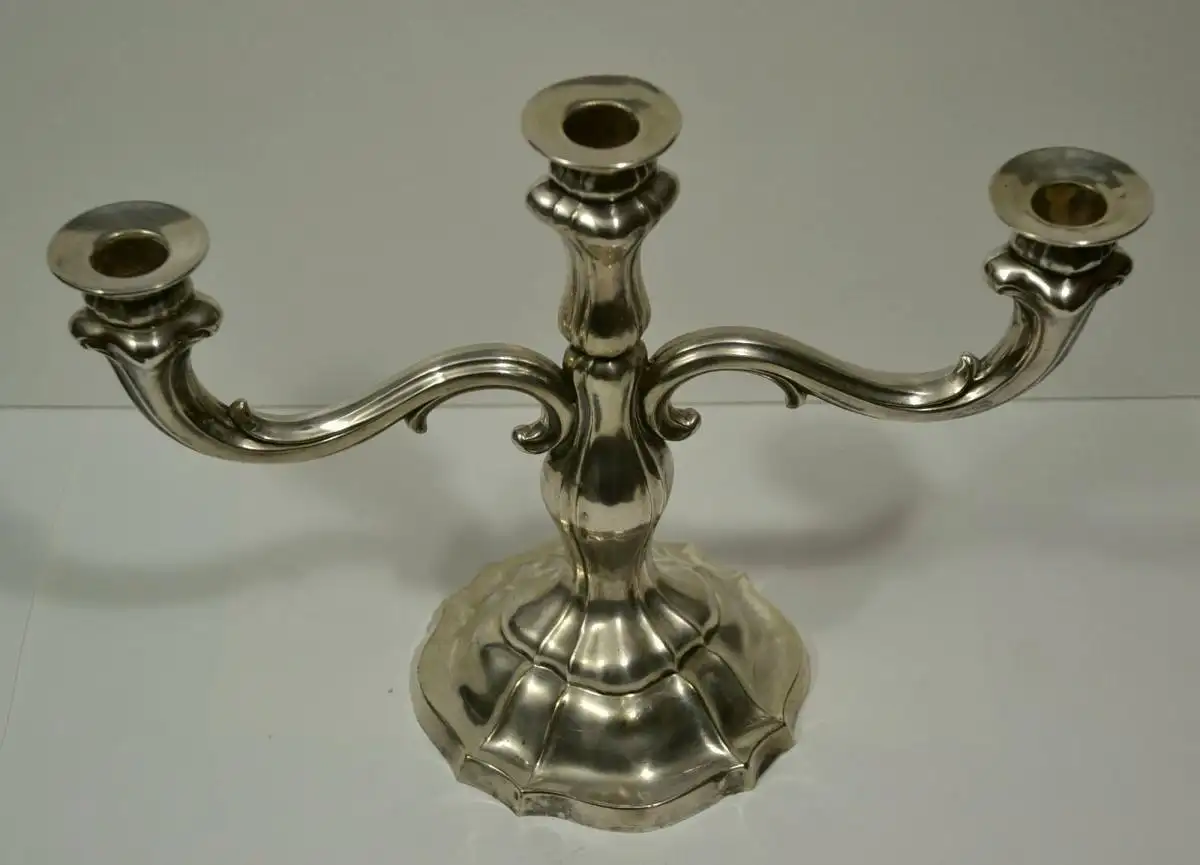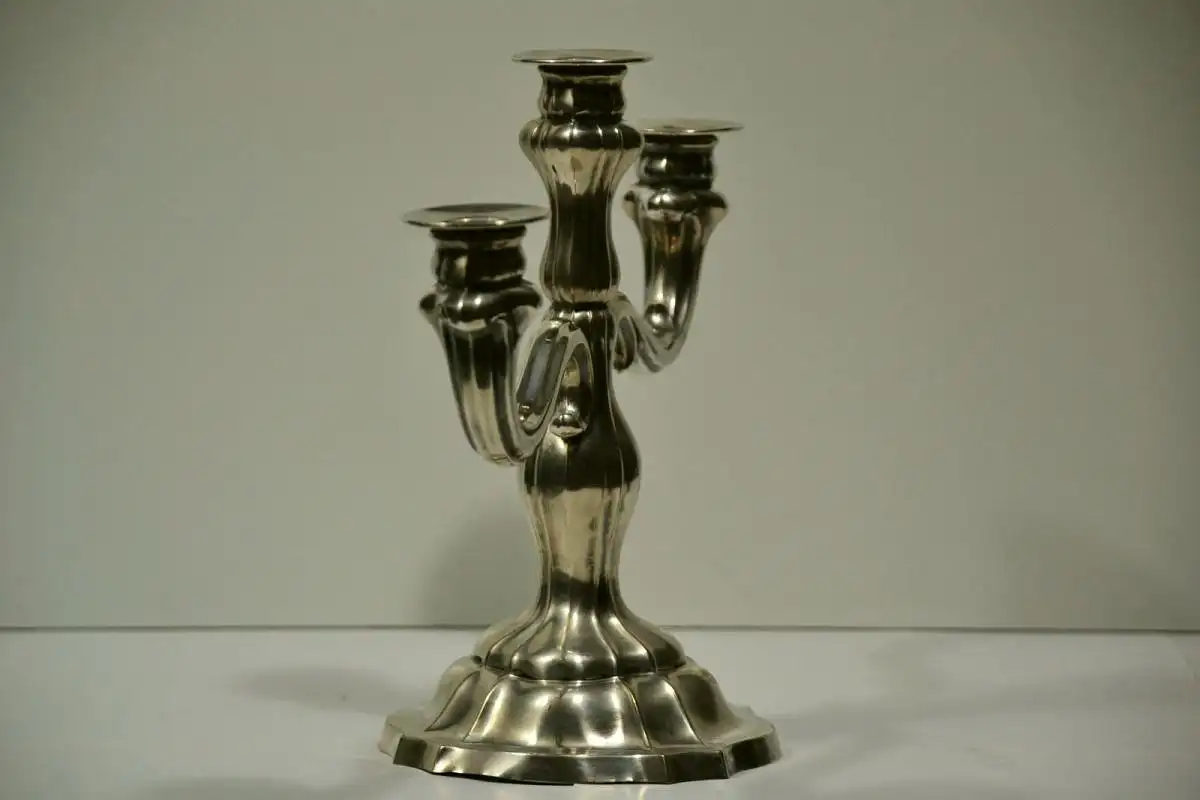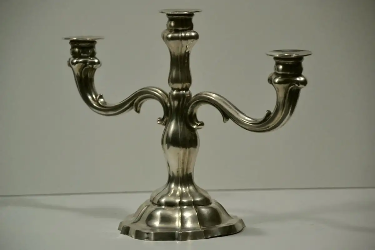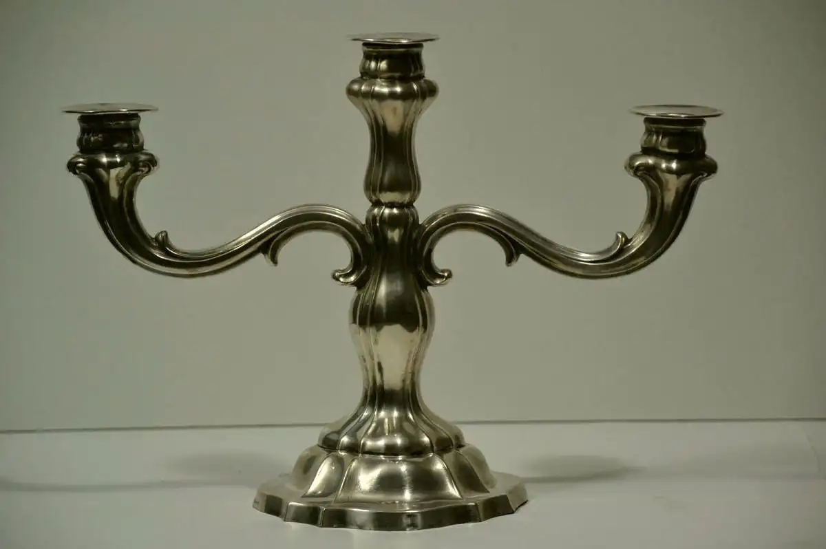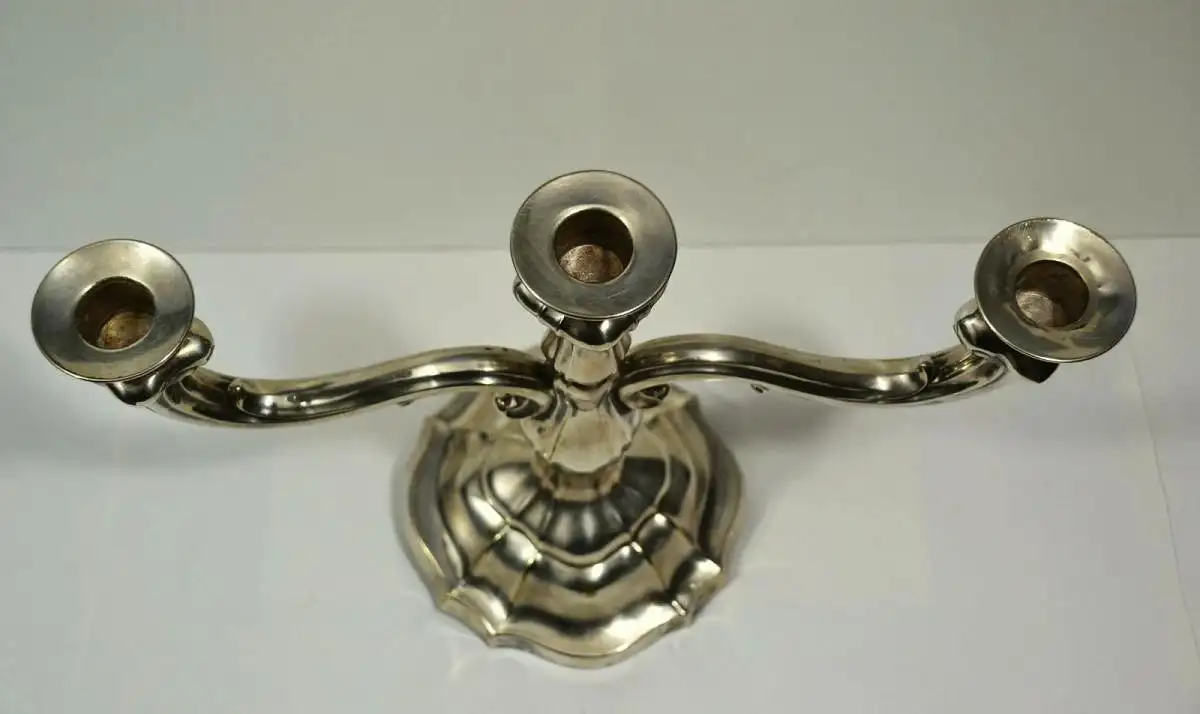 Kerzenleuchter, Metall, versilbert, altersgemäß guter Zustand, mit Gebrauchsspuren und leichten Verfärbungen.