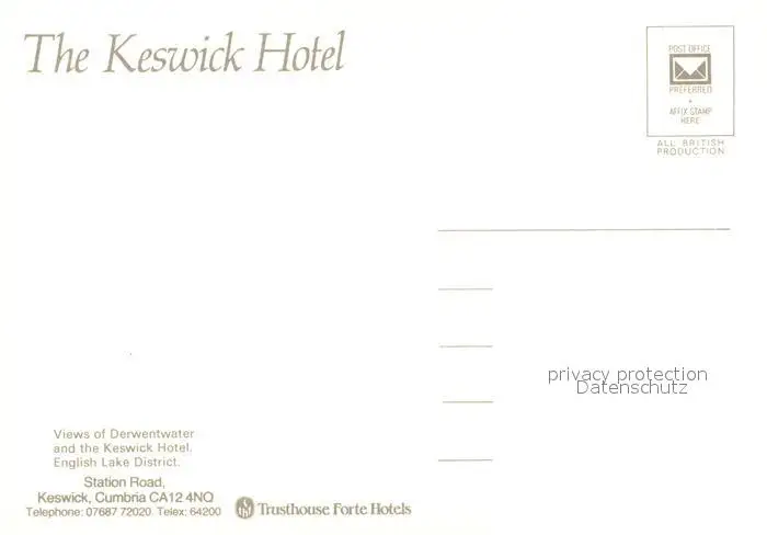 Keswick Keswick Hotel Derwentwater Nature Landscape Keswick postalisch nicht gelaufen nach 1965 Erhaltung siehe scans [FriedD77] Frierer