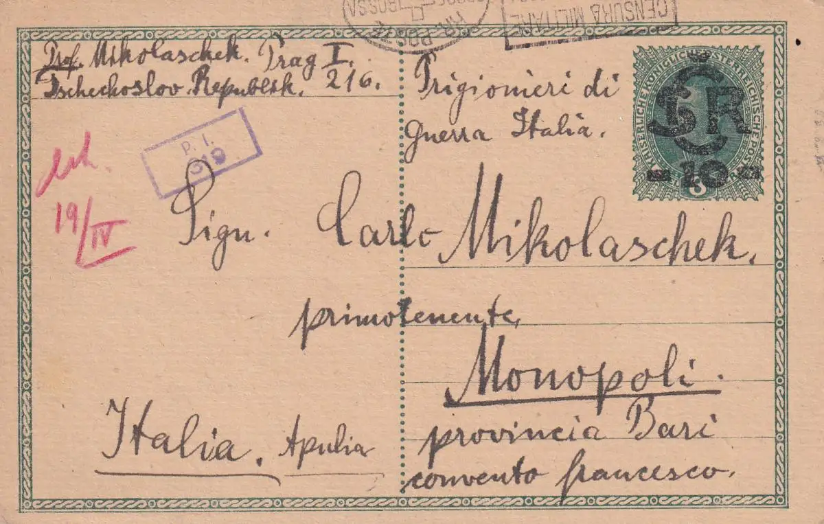 Kgf/Pow Prag nach Italien/Monopoli 1919