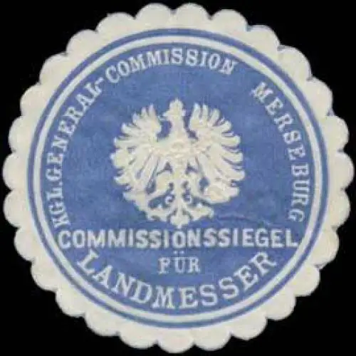 Commissionssiegel für Landmesser, blau, weiß, geprägt, Größe/Zustand: 4 , leicht beschädigt, Original Verschluss-Siegelmarke aus Papier welche früher von Behörden, Firmen etc. zum Versiegeln der Briefe benutzt wurden