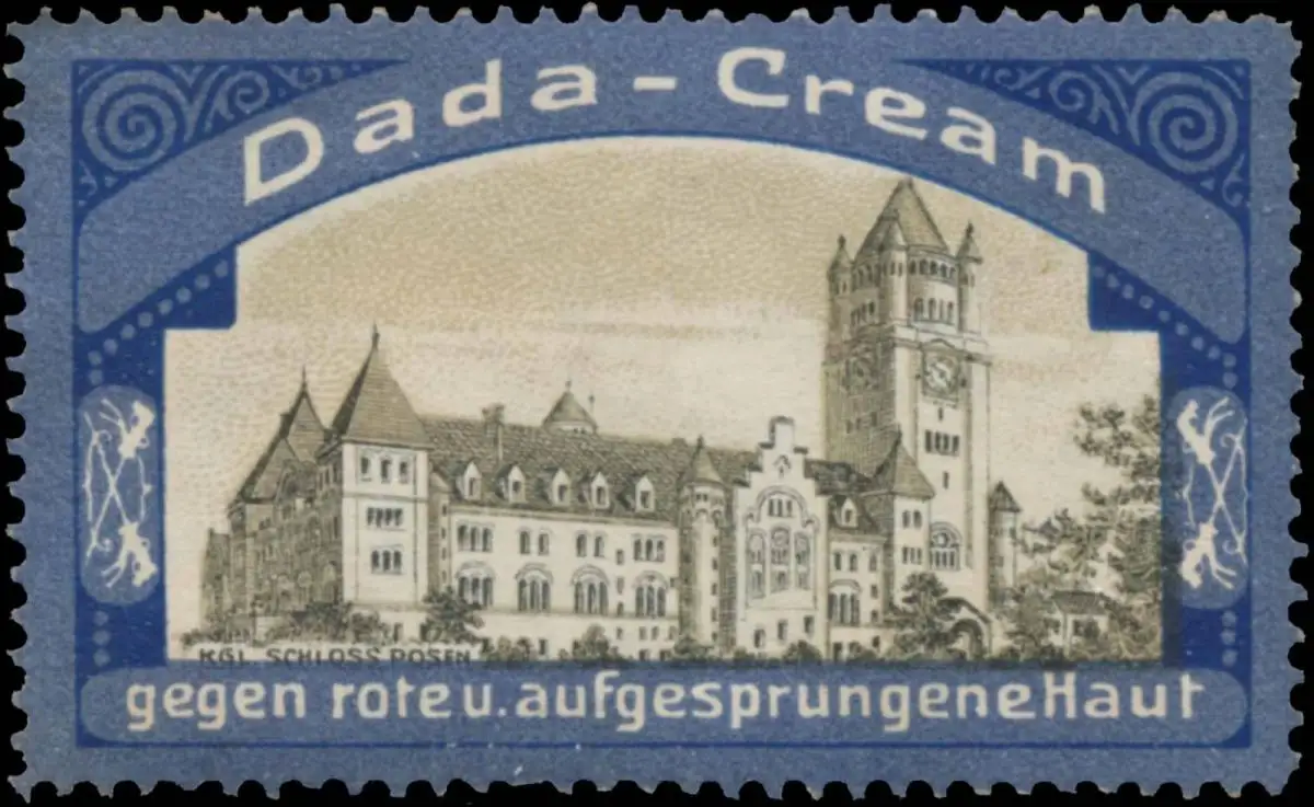 Dada-Cream gegen rote und aufgesprungene Haut, blau, Größe/Zustand: 3x5 , guter Zustand, Original alte Reklamemarke die seinerzeit für die Werbung benutzt wurde