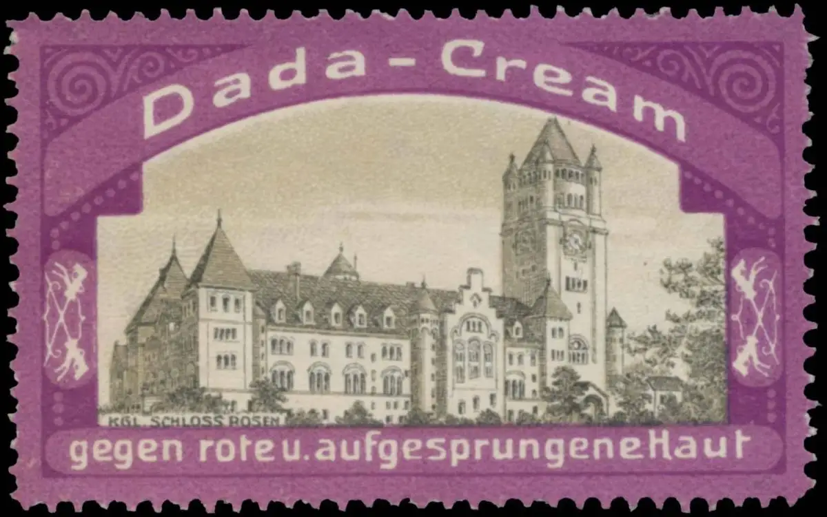 Dada-Cream, gegen rote und aufgesprungene Haut. Violett, Größe/Zustand: 3x5 , guter Zustand, Original alte Reklamemarke die seinerzeit für die Werbung benutzt wurde