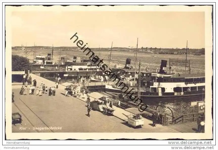 Kiel - Seegartenbrücke - Ausflugsdampfer - Dampferanlegestelle Neue-Dampfer-Compagnie - Eiswagen - Foto-AK 30er Jahre (G17393)