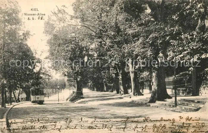 Kiel Wasserallee Strassenbahn Baumallee Kiel postalisch gelaufen 1908 Erhaltung siehe scans [FriedD77] Frierer