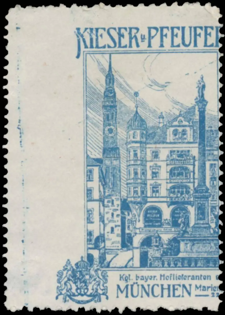 Kgl. Bayer. Hoflieferanten, Marienplatz 22, Größe/Zustand: 5x3 , leicht beschädigt, Original alte Reklamemarke die seinerzeit für die Werbung benutzt wurde