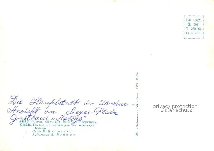 Kiev Hotel Lebed Kiev postalisch nicht gelaufen nach 1965 Erhaltung siehe scans [NatalD47] NataID47