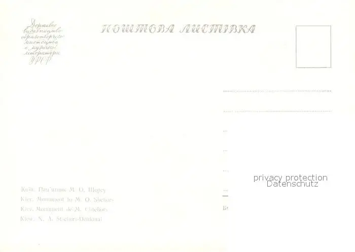 Kiev Sheshors Monument Kiev postalisch nicht gelaufen 1921-1965 Erhaltung siehe scans [NatalD47] NataID47